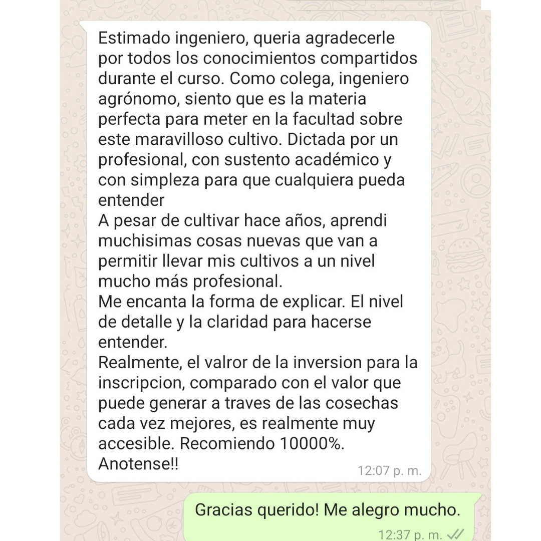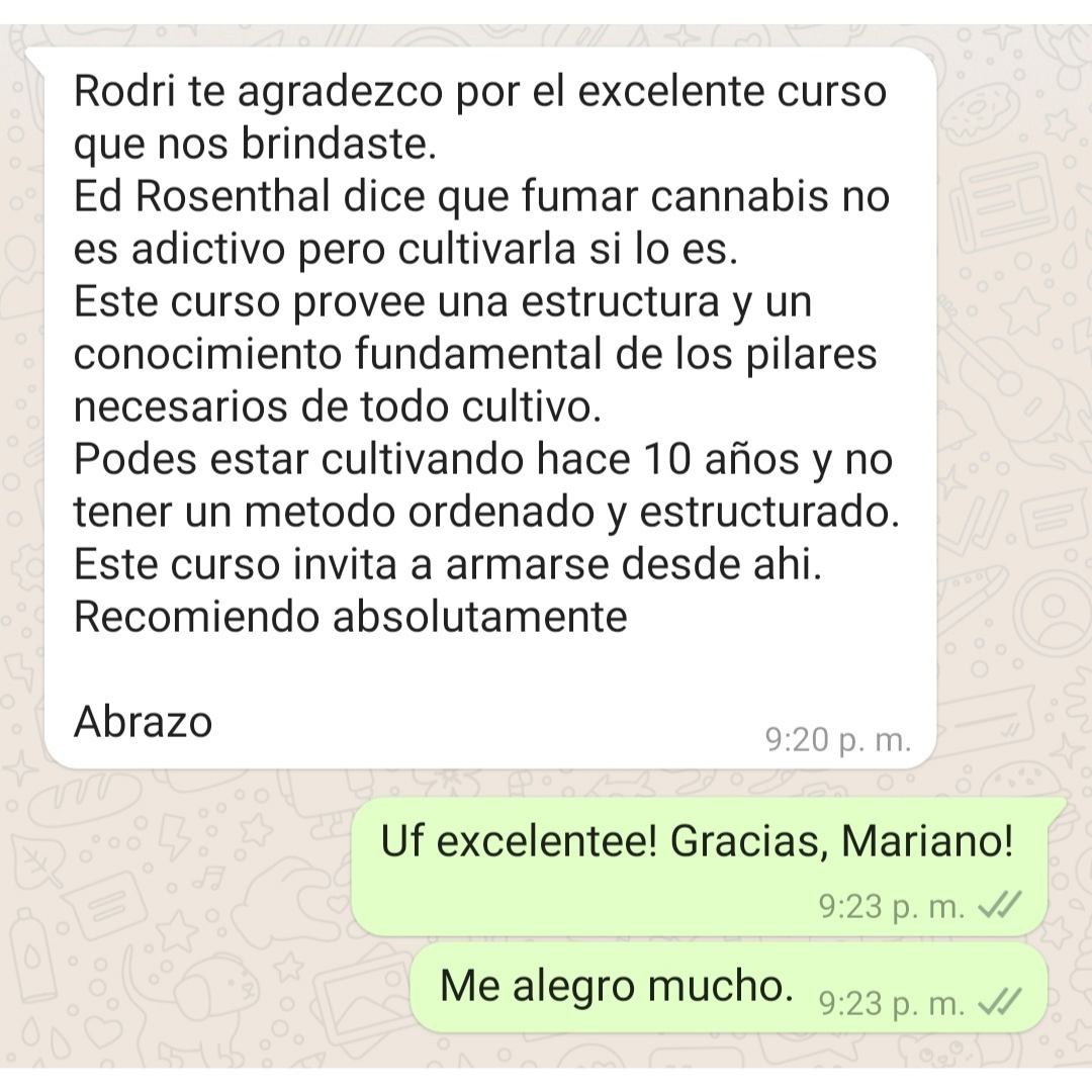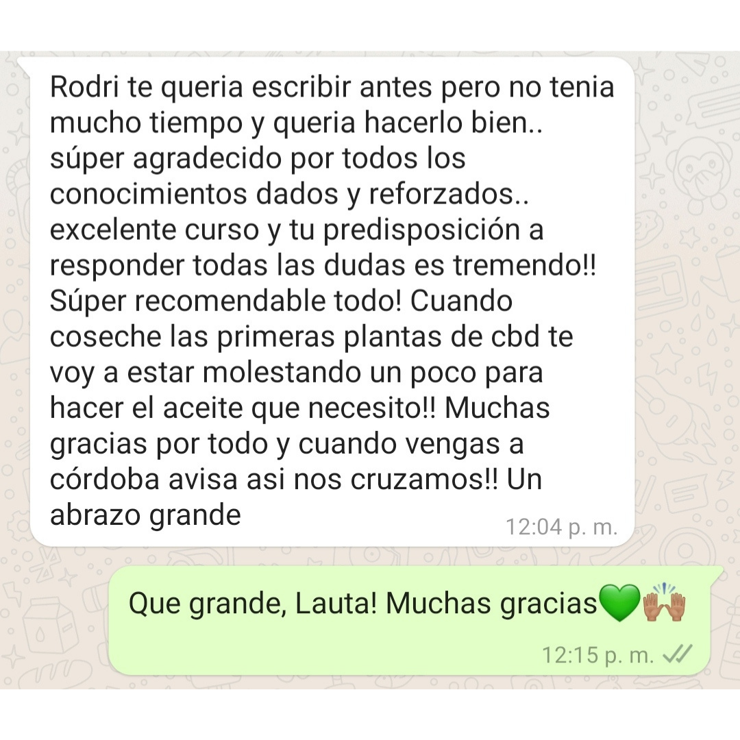 🌱Aprendé a ser Criador.🌱 ¿Te gustaría realizar fitomejoramiento en Cannabis?🌱🧬 Si querés hacer tus propias cruzas, no te lo podes perder!✅ Durante 4 horas y media de clase, el Ingeniero agrónomo Rodrigo Maltz y el Fitomejorador Pablo Cunto te explicarán los fundamentos teóricos y prácticos del mejoramiento genético. Comenzaremos con una introducción de los conceptos básicos de la genética, luego aprenderemos sobre el camino ya recorrido por otros genetistas y cultivadores en este cultivo y para terminar conoceremos más sobre la experiencia de Pablo con las plantas insensibles al fotoperíodo, más conocidas como "automáticas".