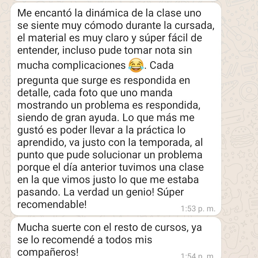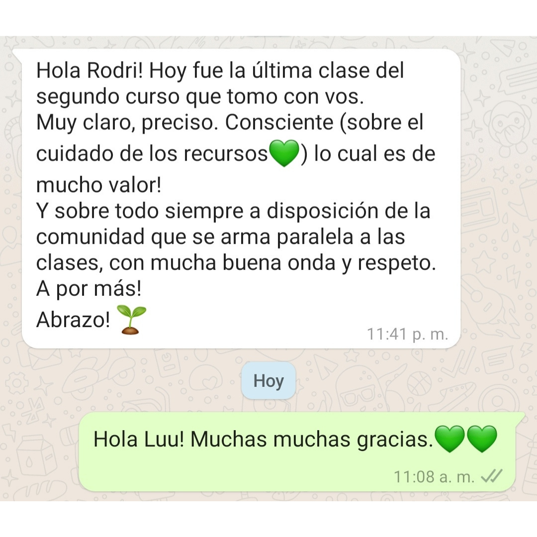 Acceso al grupo soporte de WhatsApp para compartir dudas, fotos y seguir aprendiendo entre todxs.