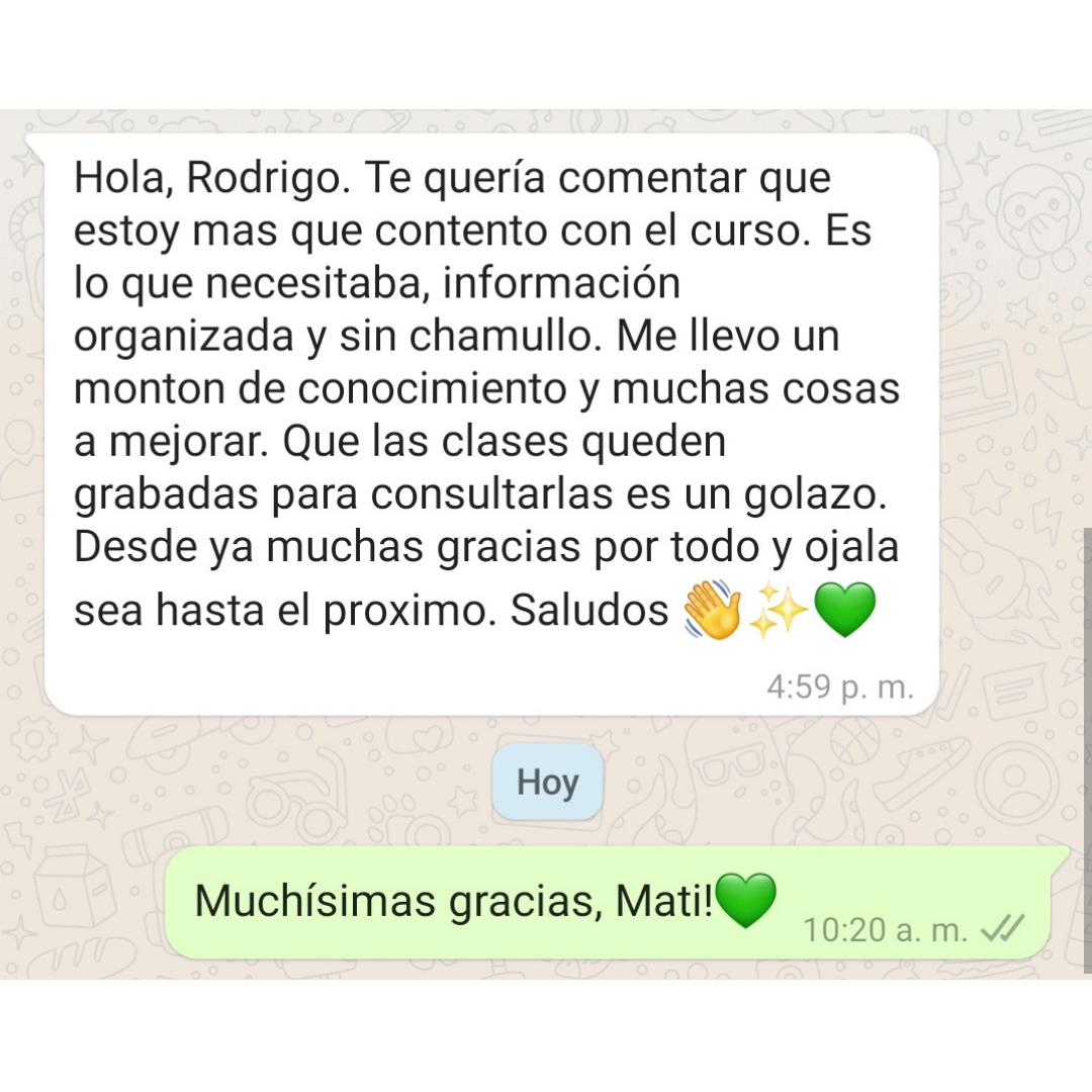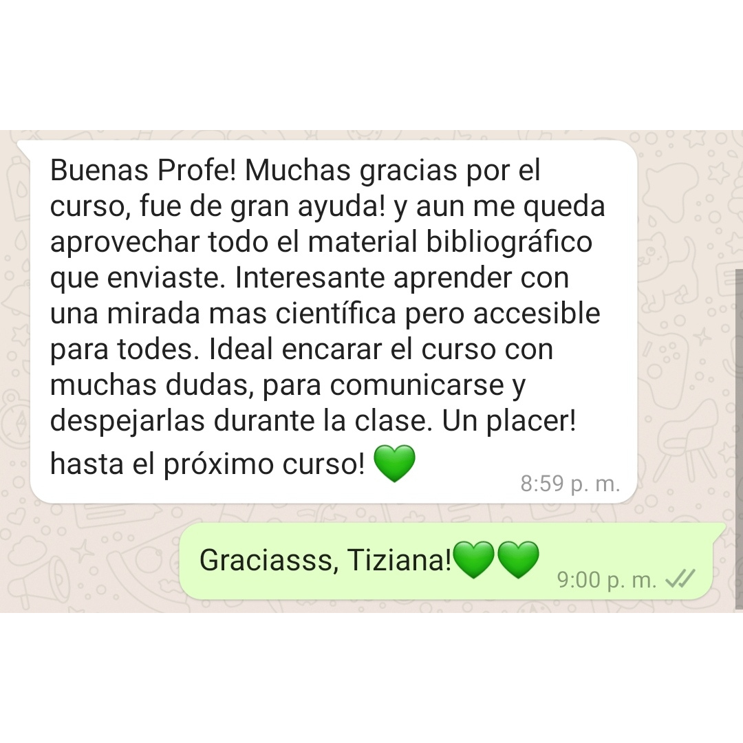 Te brindamos muchísima bibliografía para que puedas leer e informarte. También vas a tener acceso al curso grabado para siempre por si no pudiste estar en vivo.
